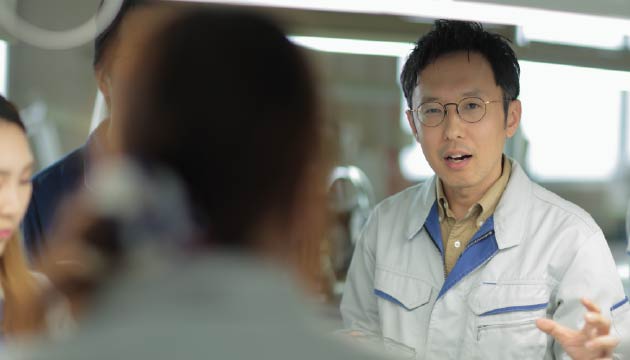 私たちの教育のルーツをたどると、創業当時に行き着きます。めがね産業黎明期、創業者・増永五左衛門は、社員が日中の仕事を終えた後に読み書きやそろばんを教えたと伝わっています。機械については、使い方から修理方法、加工時に部品を固定する「治具」の作成まで、全て自分で行うことを目指して、技術を伝えました。全体工程の管理を行うために、自分で全て管理することを目指したのです。一から勉強しないと何も始まらない状況から、めがねづくりの全てを行う会社をつくりあげた経緯は、当社の基本姿勢として生きています。